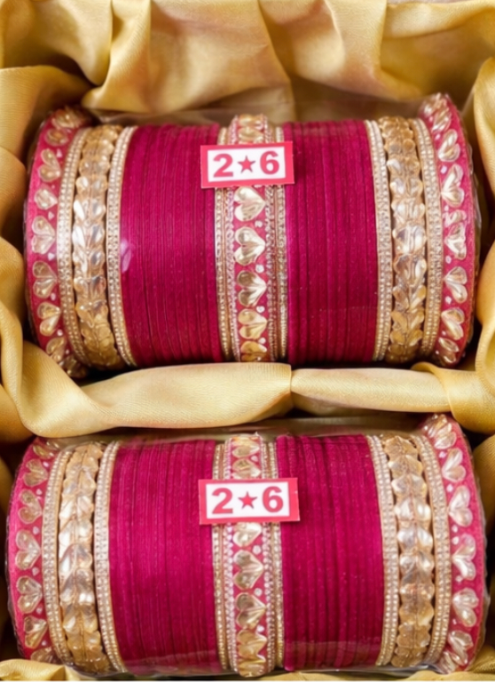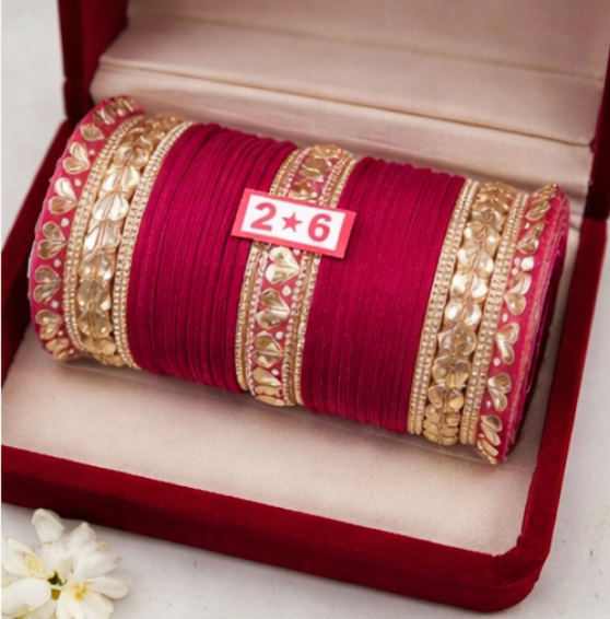Crafted with premium, soft-touch magenta velvet bangles that offer a deep, royal luster.