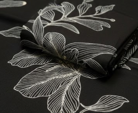Black Floral Printed Suit Fabric for Ladies