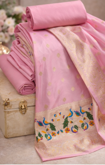 Subtle Lavender: Banarasi Silk Unstitched Suit with Minakari Peacock Weaving
