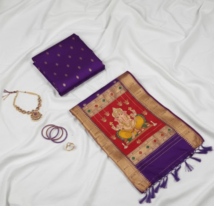 Regal Purple Pure Silk Paithani Saree with Gold Zari and Traditional Ganesha Pallu