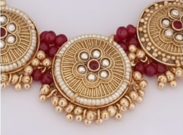 Circular kundan motifs with ruby accents