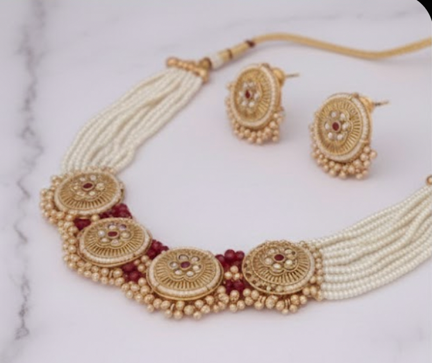 Add refined elegance to your ethnic jewellery collection with this Traditional Pearl Kundan Necklace Set, designed to balance classic craftsmanship with timeless appeal.