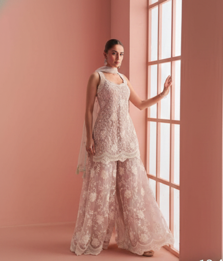 Regal Rani Pink: Gold-Embroidered Ready-to-Wear Kurta-Palazz...