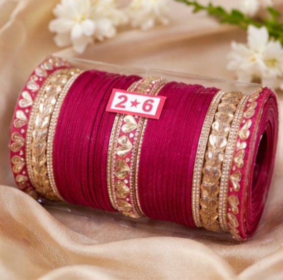 Crafted with premium, soft-touch magenta velvet bangles that offer a deep, royal luster.