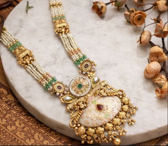 Embrace timeless elegance with this Traditional Meenakari Pearl Long Necklace Set, crafted to showcase refined Indian artistry and intricate detailing.