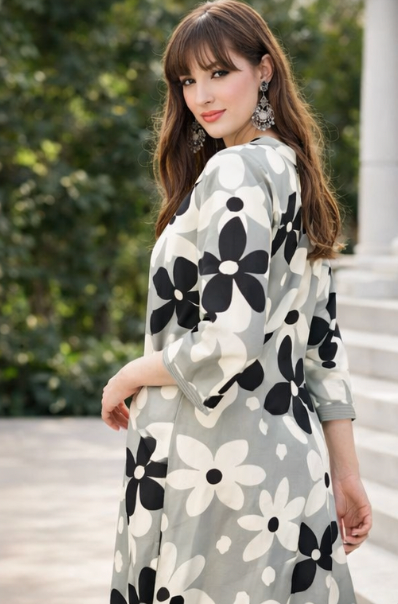 Upgrade your ethnic wardrobe with this elegant White & Black Ikat Printed Ready-to-Wear Ladies Suit, designed for modern women who value comfort and effortless style.